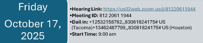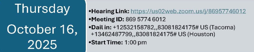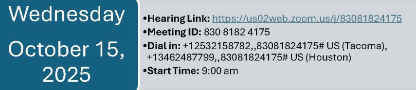 - Wednesday, October 15 at 12:00 p.m. (noon) and again at 4:00 p.m.